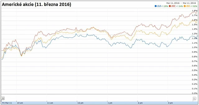 Americké akcie se v pátek vydaly strmě vzhůru díky oživení na trhu s ropou a podpoře ekonomiky ze strany ECB. Investoři si z jejích kroků prozatím berou to, co podle nich bude svědčit akciím, tedy příliv likvidity na trhy. Všechny tři nejsledovanější americké akciové indexy posílily i za celý týden, čímž prodloužily sérii růstových týdnů na čtyři, a S&P 500 navíc uzavřel na letošním maximu.