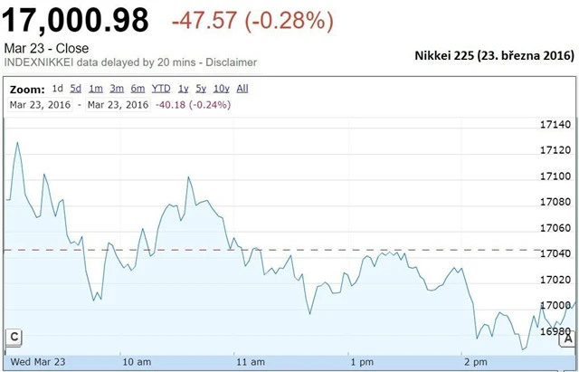 Australský S&P/ASX 200 ztratil 1,13 % na 5 084,20 bodu. Ze zasedání Fedu minulý týden vyplynulo, že namísto původně plánovaných čtyř zvýšení sazeb v letošním roce se Fed přiklání spíše jen ke dvěma. Zároveň ale na trzích rostou obavy, že by jedno z těchto dvou zvýšení mohlo přijít už na dubnovém zasedání.