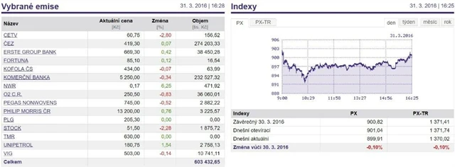 Index PX ve čtvrtek odepsal 0,1 % na 899,91 bodu.
