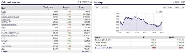 Index PX v pátek ztratil 0,78 % na 892,92 bodu, od úterý do pátku ale o 0,5 % vzrostl. Na Velikonoční pondělí se na evropských trzích neobchodovalo.