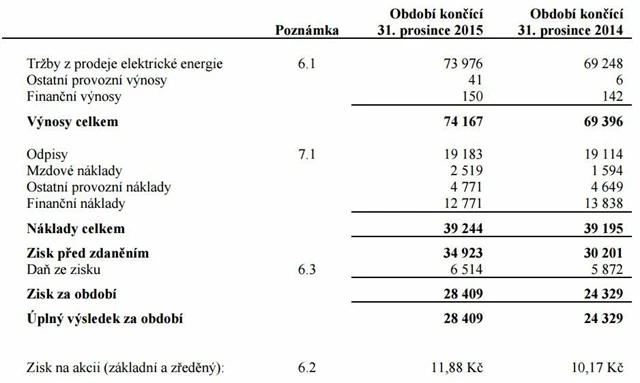 Zisk před zdaněním se firmě meziročně zvýšil na 34,923 milionu Kč z 30,201 milionu Kč, na dani ze zisku společnost loni odvedla 6,514 milionu Kč po 5,872 milionu Kč v roce 2014.