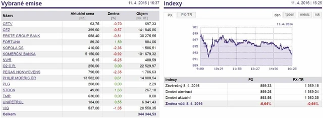 Index PX klesl o 0,64 % na 893,56 bodu.
