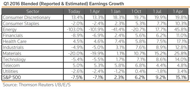 Analytici podle ankety agentury Thomson Reuters očekávají, že zisky firem z indexu S&P 500 za první čtvrtletí klesly o 7,5 %.