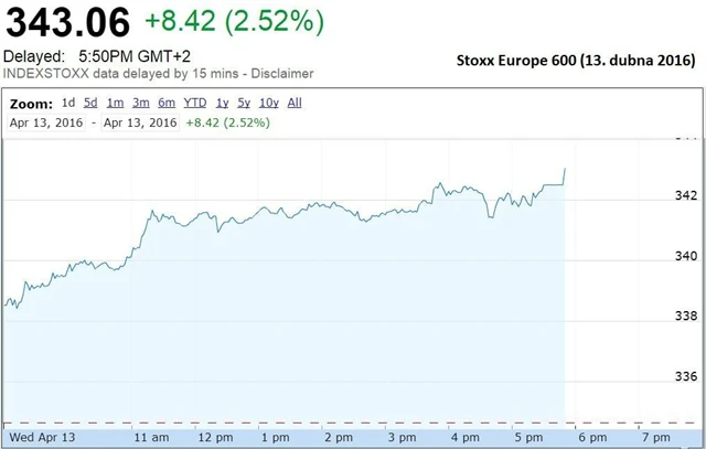 Britský FTSE 100 připsal 1,93 %, francouzský CAC 40 3,32 % a německý DAX 2,71 %. Regionální STOXX Europe 600 posílil o 2,52 % na 343,06 bodu.