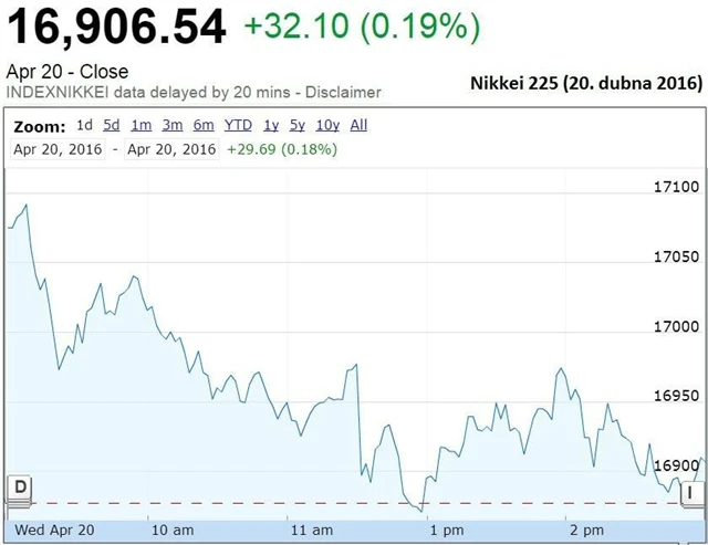 Japonské akcie rozšiřovaly úterní zisky díky slábnoucímu jenu. Nikkei 225 připsal 0,19 %, během seance však přidával více než procento.