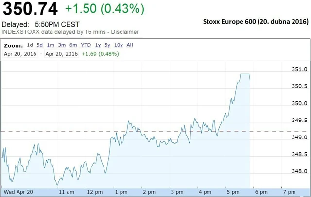 Britský FTSE 100 připsal 0,08 %, francouzský CAC 40 0,56 % a německý DAX 0,69 %. Regionální STOXX Europe 600 zpevnil o 0,4 %.