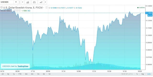 Švédská centrální banka ve čtvrtek ponechala ve snaze povzbudit inflaci základní úrokovou sazbu v mínusu (-0,5 %) a oznámila úmysl nakupovat aktiva - včetně dluhopisů - v hodnotě 45 miliard švédských korun (zhruba 5,6 miliardy USD). Koruna vzápětí podle očekávání oslabila.