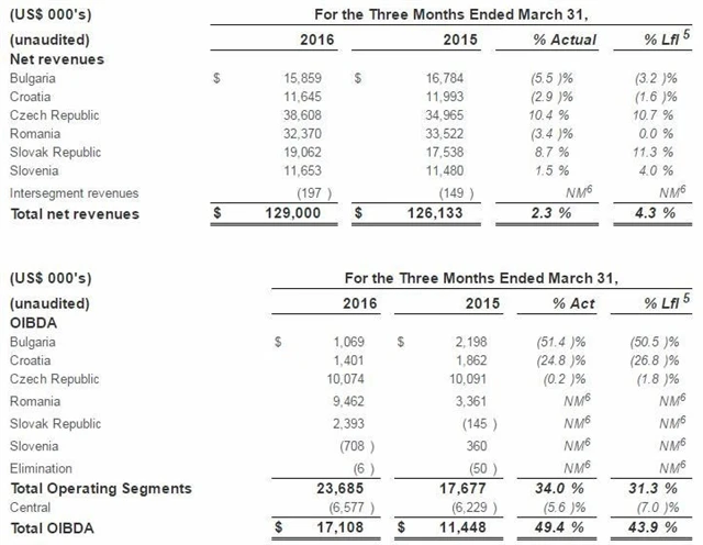 Během konferenčního hovoru management společnosti uvedl, že by v příštích letech podle očekávání měly firmě tržby růst rychleji než náklady. Volné cash flow nezatížené úrokovými náklady a garančními poplatky by za celý rok mělo dosáhnout při stálých kurzech měn 85 až 95 milionů USD (v roce 2015 bylo 74 milionů USD). Společnost však plánuje veškerou volnou hotovost použít na splácení dluhu, v důsledku čehož by mělo být volné cash flow zhruba nulové. Zisk OIBDA by by měl letos růst při stálých kurzech měn tempem mezi 11 a 19 %, což znamená, že by měl dosáhnout 136 až 146 milionů USD (loni: 122,8 milionu USD).