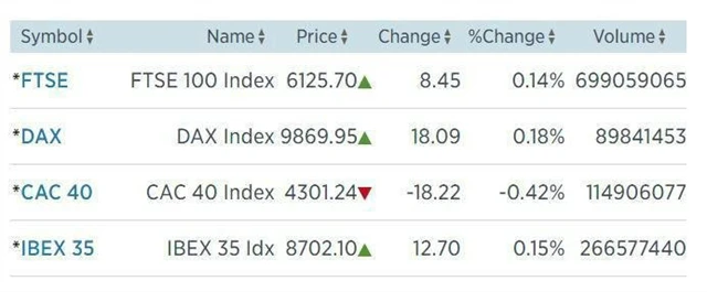 Stran jednotlivých titulů - akcie oceláren ArcelorMittal poklesly o 1,2 %, akcie aerolinek easyJet si naopak připsaly 1,6 % a akcie italské banky Monte dei Paschi di Siena poskočily o 2,4 %, když její ohlášené čtvrtletní výsledky předčily očekávání analytiků.