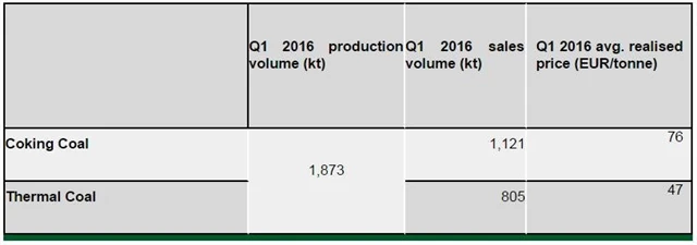 V polovině dubna NWR oznámila, že za první tři měsíce letošního roku vytěžila 1,873 milionu tun uhlí, meziročně zhruba o sto tisíc tun více. Klesly ale ceny, za které uhlí prodávala. Zatímco v loňském prvním čtvrtletí utržila za koksovatelné uhlí průměrně 90 eur za tunu, letos to bylo 76 eur. V případě energetického uhlí se průměrná cena snížila z 56 eur na 47 eur za tunu.
