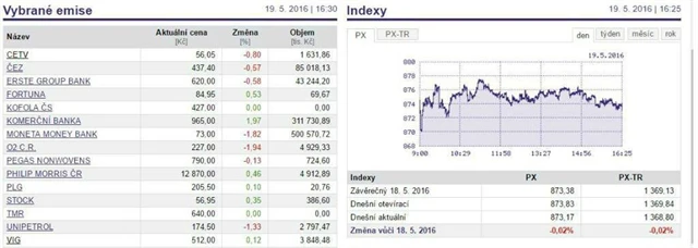 Index PX ve čtvrtek klesl o 0,02 % na 873,17 bodu.