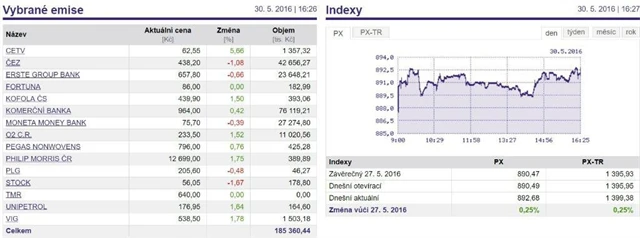 Index PX v pondělí připsal 0,25 % na 892,68 bodu.