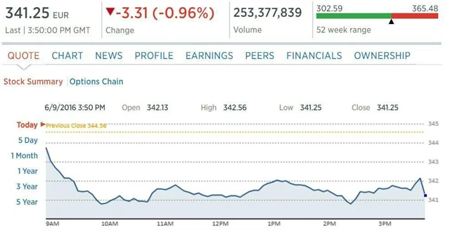Regionální index STOXX Europe 600 klesl o 0,96 % na 341,25 bodu.
