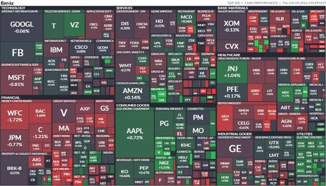 V závěru obchodování index Dow klesl o 0,11 % na 17 985,19 bodu, širší index S&P 500 oslabil o 0,17 % na 2 115,48 bodu a index technologického trhu Nasdaq Composite se snížil o 0,32 % na 4 958,62 bodu. Index volatility VIX narostl o 3,98 % na 14,64 bodu a výnos 10letých vládních dluhopisů USA klesl o více než dva bazické body na 1,6798 %.