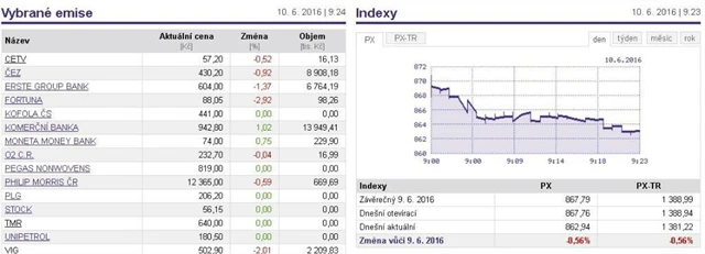 Pražská burza zahájila páteční obchodování poklesem, s akciemi Unipetrolu se obchoduje naposledy s nárokem na dividendu