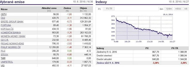 Podle analytiků zasáhla pražskou burzu nervozita na evropských akciových trzích související mimo jiné s blížícím se referendem o vystoupení Spojeného království z Evropské unie.