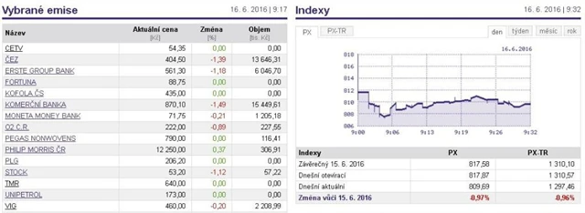 Pražská burza v úvodu čtvrteční seance odepisovala bezmála procento