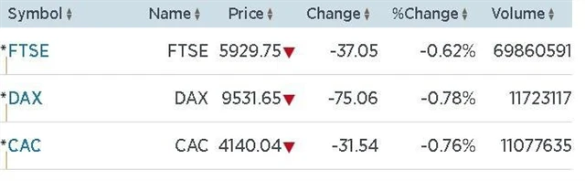 Celoevropský akciový index STOXX Europe 600 odepisoval v prvních desítkách minut čtvrtečního obchodování přes tři čtvrtiny procenta. Na investory tlačila rozhodnutí centrálních bank v USA a Japonsku ponechat měnovou politiku beze změny, stejně jako obavy z možného odchodu Spojeného království z Evropské unie.