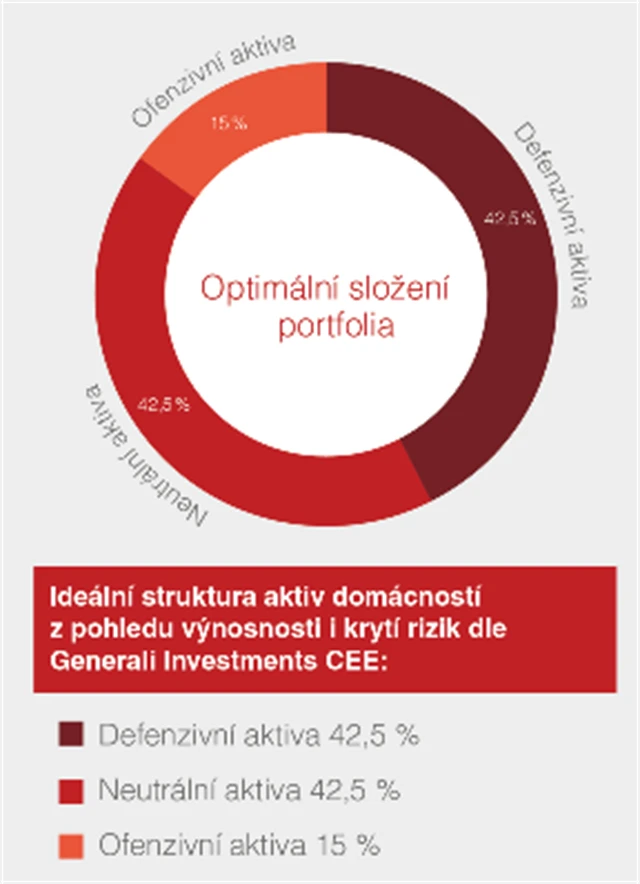 České domácnosti si nadále nechávají zbytečně mnoho prostředků v hotovosti nebo jako bankovní vklady. Takto defenzivně mají uloženo 64 % finančních aktiv, zatímco německé nebo rakouské domácností si vystačí s řádově o třetinu nižším podílem. Tento rozdíl činí v korunovém vyjádření 868 miliard a podle propočtů Generali Investments CEE by změna v investičním chování, která by odpovídala indexu finanční dospělosti na nule, přinesla Čechům 13,8 miliardy korun ročně navíc.