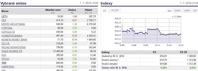 Pražská burza si v pátek ráno připsala čtvrt procenta