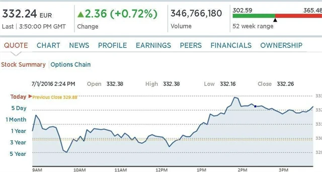 - Britská vláda zrušila plány na letošní prodej podílů v bankovních skupinách Royal Bank of Scotland a Lloyds Banking Group. Agentuře Reuters to v pondělí řekly zdroje blízké ministerstvu financí. Vláda tak podle nich reaguje na výsledek čtvrtečního referenda, ve kterém se Britové vyslovili pro odchod z Evropské unie, což vyvolalo výkyvy na finančních trzích a nejistotu ohledně dalšího ekonomického vývoje.