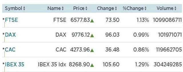 Se zisky okolo jednoho procenta uzavřely páteční obchodování i indexy jednotlivých velkých trhů západní Evropy.