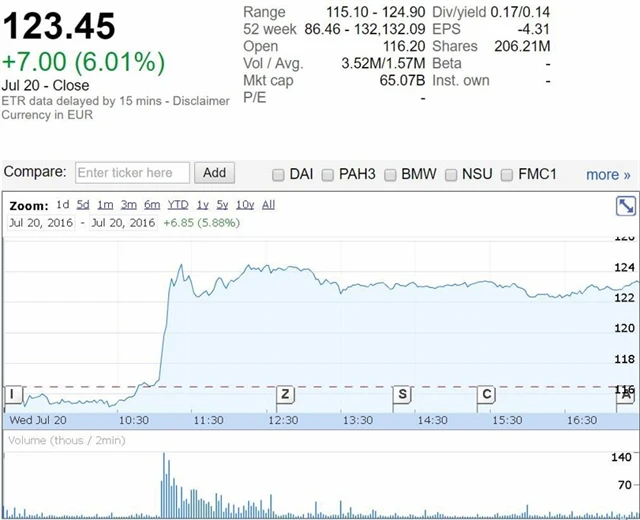 Videoherní společnost Ubisoft Entertainment si ve středu připsala 7,78 % poté, co její čtvrtletní tržby překonaly odhad analytiků. Cenné papíry Volkswagenu zpevnily o 6,01 %, když společnost v předběžném sdělení oznámila nečekaně vysoký provozní zisk.