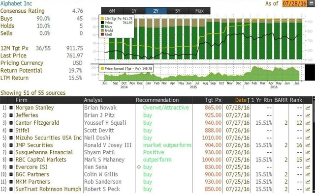 Skepse pesimistických analytiků se nicméně většinou omezuje pouze na několik následujících čtvrtletí. Většina trhu se shoduje, že dlouhodobě bude Alphabet prosperovat. To dokazují i investiční doporučení. Akcie Alphabetu aktuálně podle dat agentury Bloomberg pokrývá 50 analytiků. Kupovat jich titul doporučuje 45, držet pět. Prodejní doporučení není na akcie Alphabetu žádné. Průměrná cílová cena titulu je 911,75 USD, ve středu akcie skončily na 761,97 USD. Podle analytiků by tak titul během následujících 12 měsíců měl posílit přibližně o pětinu. Optimisticky trh nahlíží zejména na videoportál YouTube, jehož popularita kontinuálně roste.