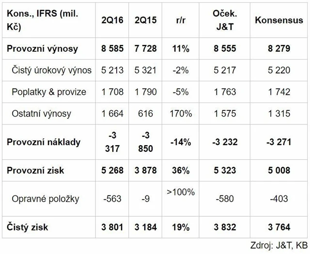 "Samotná reportovaná čísla hodnotíme neutrálně a víceméně odpovídají naší projekci a trendům z posledních kvartálů. Pozitivní je akcelerace růstu úvěrového portfolia (ve druhém čtvrtletí +9,9 % meziročně). Celkový dojem z výsledků však kazí zvýšení regulatorních požadavků na kapitál a snížení očekávané dividendy," potvrdil Milan Lávička, analytik z J&T Banky.