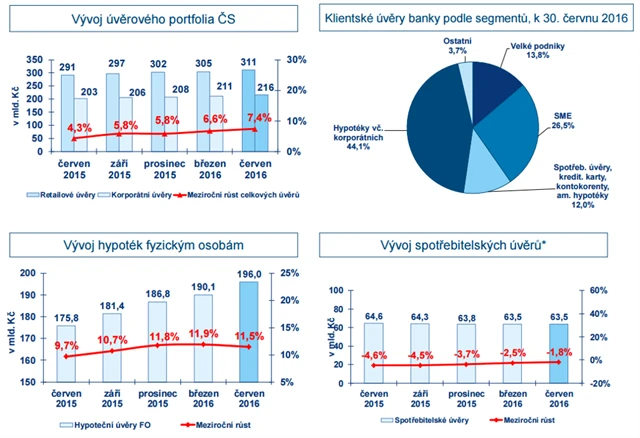 Spořitelně v prvním pololetí přibyly poskytnuté úvěry ve všech klíčových segmentech. Hlavním tahounem růstu byly podle Tomáše Salomona, předsedy představenstva ČS, zejména nové hypoteční úvěry, jejichž objem v pololetí přesáhl 25 miliard korun. To znamená historicky nejsilnější první polovinu roku, uvedl Salomon.