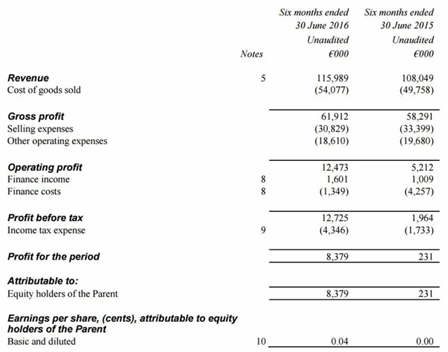Provozní zisk společnosti vzrostl z 5,2 milionu eur na 12,5 milionu eur a zisk EBITDA se jí zvýšil na 17,9 milionu eur z 10,8 milionu eur. V přepočtu na jednu akcii firma vydělala 4 centy, loni vykázala "černou nulu". Celkový objem výroby se meziročně zvýšil z 44,1 milionu litrů na 48,6 milionu litrů.