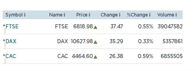 Indexy hlavních západoevropských akciových trhů byly po prvních minutách čtvrtečního obchodování včerných číslech, když investory povzbudila především příznivá makroekonomická data z Číny o růstu aktivity v klíčovém zpracovatelském sektoru.