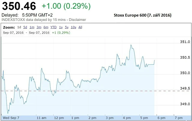 Britský FTSE 100 připsal 0,30 %, francouzský CAC 40 0,61 % a německý DAX 0,62 %. Regionální Stoxx Europe 600 zpevnil o 0,3 %. Německý DAX se středečním ziskem konečně přehoupl přes nulu a smazal letošní ztrátu. Nyní je o 0,09 % výše, než byl na konci loňského roku, a to i přesto že červencová průmyslová výroba spadla nejprudším tempem od srpna 2014.