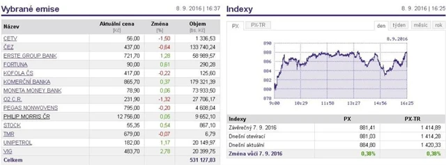 Index PX zakončil čtvrteční obchodování o 0,38 procenta výše než při středečním uzavření.
