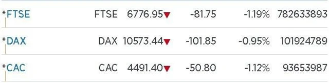 V pátečním obchodování ztrácely indexy velkých akciových trhů západní Evropy shodně více než jedno procento.