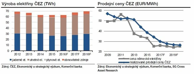 Dále Němý upozorňuje, že ČEZ si prodejní ceny elektřiny zajišťuje s předstihem, a proto se vývoj cen elektřiny na burze v Německu do jeho výsledků promítá až se zpožděním. "Současná cena německé elektřiny je zhruba 25 EUR/MWh, letos ale ČEZ podle našich odhadů prodával elektřinu přibližně za 34 EUR/MWh. Pro rok 2017 pak má firma zajištěno více než 80 % očekávané produkce v průměru za 31 EUR/MWh. To ilustruje, že bude trvat ještě několik let, než se průměrné prodejní ceny elektřiny přizpůsobí současným tržním cenám."