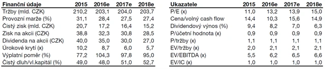 "Vidíme zvyšující se riziko, že firma nedosáhne svého letošního výhledu. A pokud ČEZ celoročních cílů přece jen dosáhne, budou jeho zisky za druhé pololetí z důvodu několika mimořádných vlivů poměrně nízké. Na druhou stranu budou akcie ČEZ zřejmě nabízet velmi atraktivní dividendový výnos a v otázce výše budoucích dividend je zde velký prostor pro pozitivní překvapení. Nečekáme však, že by společnost oznámila výši dividendy z letošního zisku a případné budoucí nastavení dividendové politiky dříve než na jaře 2017. Z důvodu absence krátkodobých pozitivních impulzů a faktu, že akcie firmy jsou podle očekávaného ukazatele EV/EBITDA mírně nadhodnocené, snižujeme doporučení z 'kupovat' na 'držet'," píše Němý v aktuální analýze.