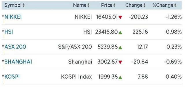 Asijské akciové trhy ve čtvrtečním obchodování nenašly společný směr. Index tokijské burzy Nikkei 225 klesl o 1,26 %, když jej dolů tlačil sílící jen. Trhy v Číně, na Tchaj-wanu a v Jižní Koreji zůstaly kvůli svátkům zavřené.