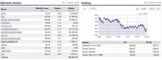 Týden na BCPP: Index PX -2,16 %, VIG -5,8 %, Moneta +2,4 %