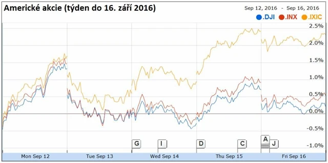 Americké akciové trhy v závěru týdne klesly, za celý týden nicméně mírně posílily. Wall Street v pátek oslabil zejména pokles akcií bank kvůli sporu americké vlády s Deutsche Bank. Po čtyřech dnech růstu klesly také akcie technologického gigantu Apple.
