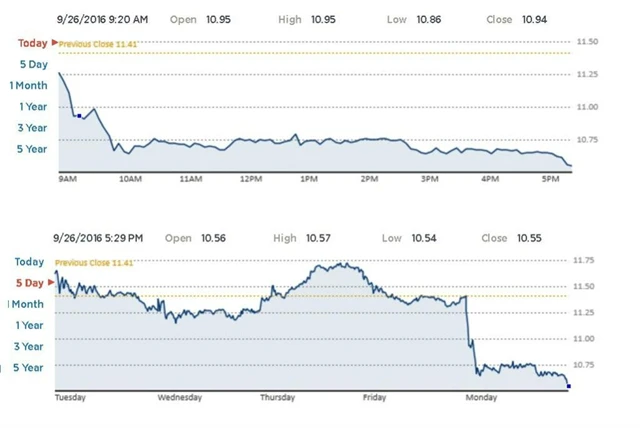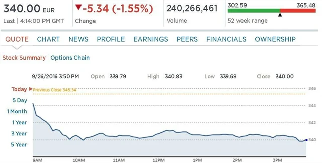 Nejdramatičtější propad zaznamenala v pondělí Deutsche Bank, jejíž akcie začaly výrazně klesat poté, co německý časopis Focus přinesl zprávu, že německá kancléřka Angela Merkelová vyloučila státní pomoc největšímu komerčnímu finančnímu ústavu své země. Kancléřství poté tuto zprávu dementovalo, škoda už ale byla na světě. Akcie Deutsche Bank ztratily 7,5 %, a spadly tak na své nové historické minimum.