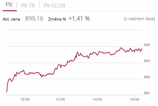 Pražská burza se v závěru týdne vrátila do pozitivního pásma, když index PX vzrostl o 1,41 % na 899,16 bodu. Nahoru ji táhly MONETA Money Bank a skupina ČEZ, nedařilo se Komerční bance a O2 Czech Republic.