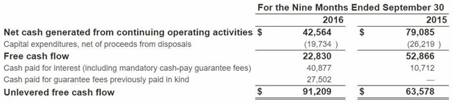 Volné cash flow nezatížené úroky a garančními poplatky se za prvních devět měsíců letošního roku meziročně zvýšilo na 91,21 milionu USD z 63,58 milionu USD. Na garančních poplatcích CME zaplatila v prvním třech čtvrtletích 27,5 milionu USD a na úrocích 40,88 milionu USD. Volné cash flow po odečtení úroků a garančních poplatků tak bylo 22,83 milionu USD, v prvních třech měsících loňského roku dosahovalo 52,87 milionu USD.