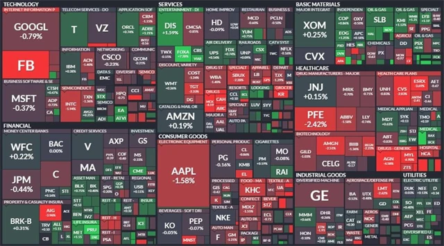 V červených číslech skončilo šest z jedenácti hlavních sektorů indexu S&P 500. Nejvýrazněji klesly sektor zdravotní péče, technologické odvětví a sektor necyklického spotřebního zboží. Stouply energetické odvětví či sektor veřejných služeb.