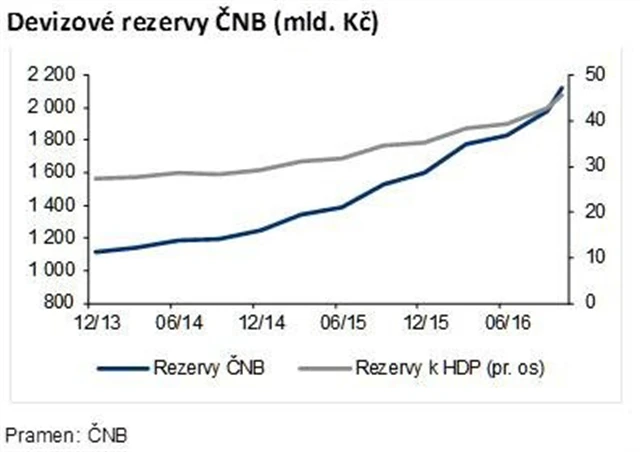 "Devizové rezervy ČNB v poměru k HDP se pohybují kolem 45 %, což je po Švýcarsku nejvyšší podíl v rámci zemí OECD. Vzhledem k rychlému růstu devizových rezerv a rostoucímu institucionálnímu riziku pro ČNB se nadále domníváme, že banka ukončí kurzový režim s mírným překvapením ve druhém čtvrtletí příštího roku, aby se vyhnula nadměrným spekulativním pozicím a vysokým intervencím," dodává Seidler.