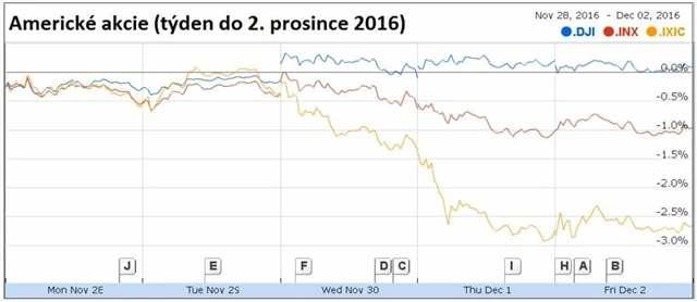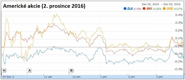 Americké akcie v pátek uzavřely bez větších změn. Zpráva o listopadovém vývoji situace na trhu práce ve Spojených státech neměla na obchodování výraznější vliv, jelikož pouze potvrdila přesvědčení většiny trhu, že Fed na svém prosincovém zasedání přistoupí ke zvýšení úrokových sazeb.