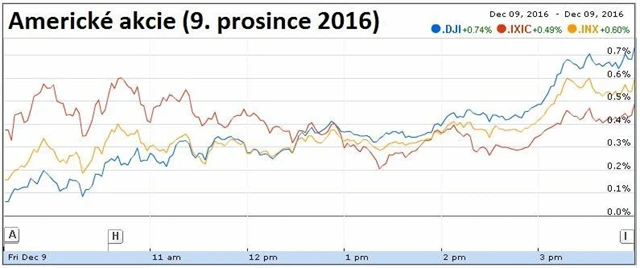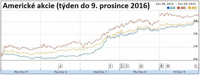 Akcie v USA rostou již od 8. listopadu, kdy byl novým americkým prezidentem zvolen Donald Trump. Investoři očekávají, že plány Trumpa, které počítají se snižování daní a zvyšování výdajů na infrastrukturu, podpoří hospodářský růst USA. To pomáhá hlavně akciím finančních a průmyslových společností. S&P 500 od voleb přidal již více než pět procent.