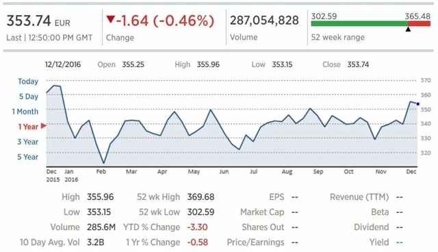 Britský FTSE 100 klesl o 0,92 % na 6 890,42 bodu, německý DAX se snížil o 0,12 % na 11 190,21 bodu a francouzský CAC 40 uzavřel se ztrátou 0,07 % na 4 760,77 bodu, zatímco italský index FTSE MIB naopak stoupl o 0,42 % na 18 370,32 bodu. Celoevropský STOXX Europe 600 uzavřel se ztrátou 0,46 % na 353,74 bodu.
