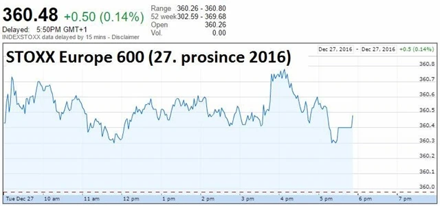 Obchodování na evropských akciových trzích v úterý skončilo v zelených číslech. Aktivita investorů byla utlumená, trh v Londýně zůstal i v úterý kvůli vánočním svátkům zavřený.