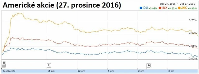 "Indexy se posouvají výš. Na tom není nic zvláštního, ke konci roku je takový vývoj obvyklý," říká Wayne Kaufman, hlavní tržní analytik ve společnosti Phoenix Financial Services. "Investoři jsou připravení na rok 2017 a čekají, jaké kroky podnikne nová administrativa pod vedením Donalda Trumpa," dodal.
